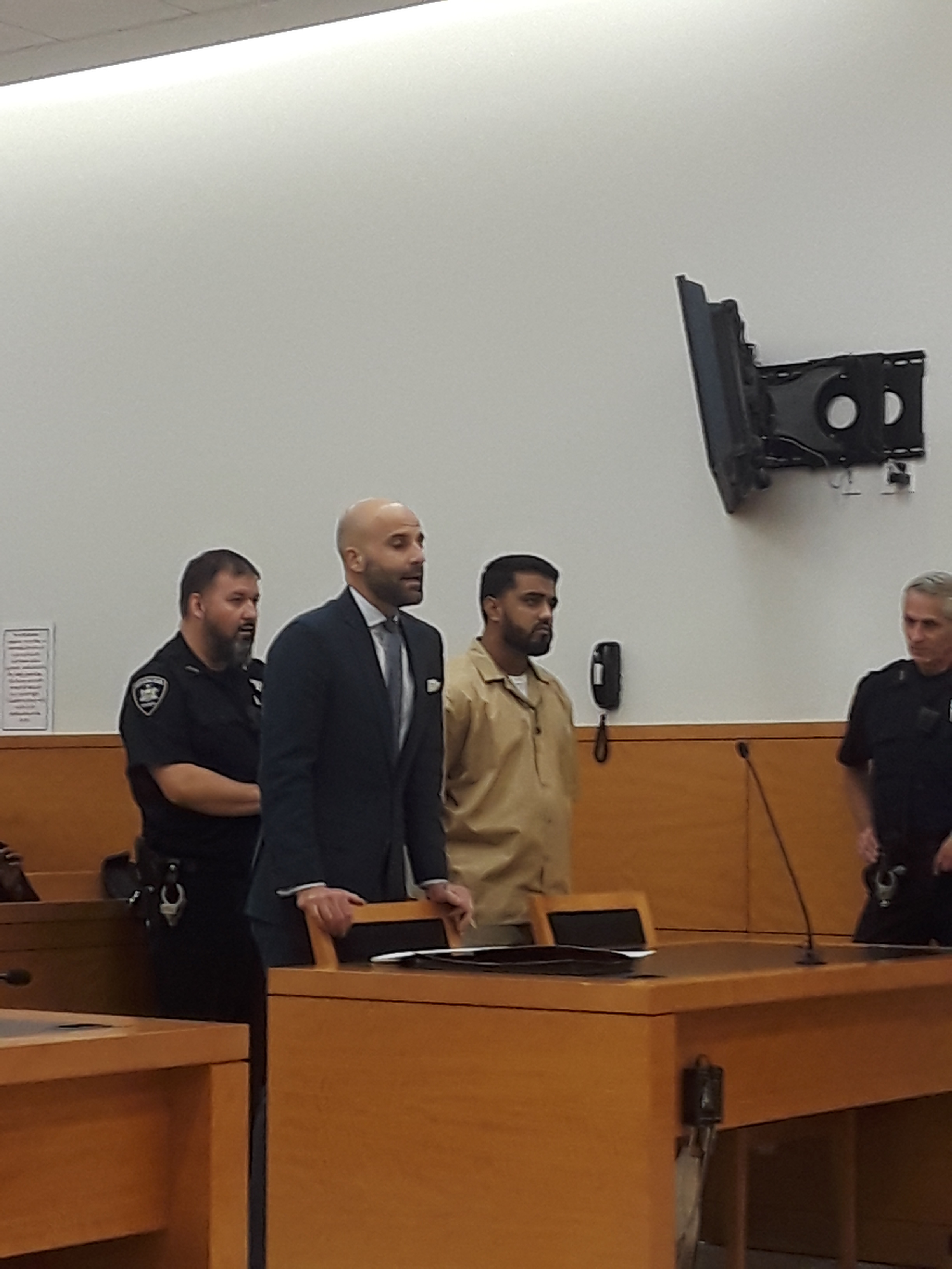 /Saeed Ahmad (right) in Brooklyn Supreme Court on Tuesday, Nov. 27, 2018 standing next to his attorney Michael Jaccarino (left) before pleading guilty to causing the death of Harleen Grewall on Oct. 13, 2017. Eagle photo(s) by Christina Carrega.
