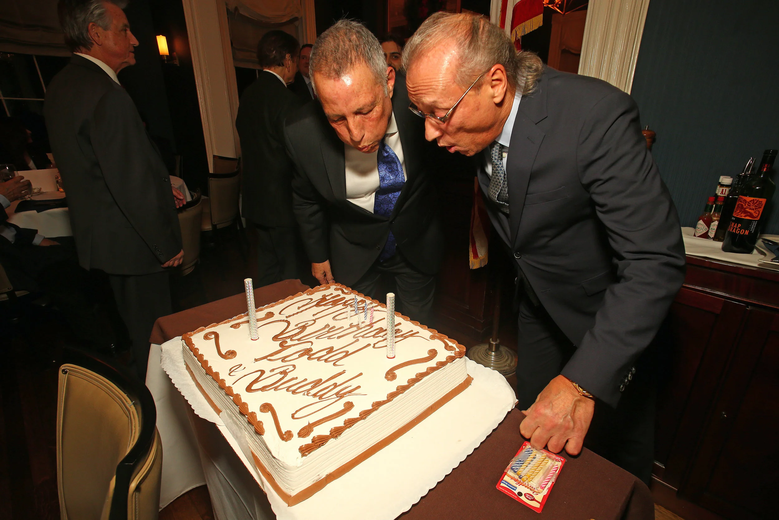 After a soulful rendition of “Happy Birthday To You” by Allison Candelo, who also said the “Star Spangled Banner” earlier in the evening, Greenberg called on law partner Dominic Addabbo to help him blow out the candles.