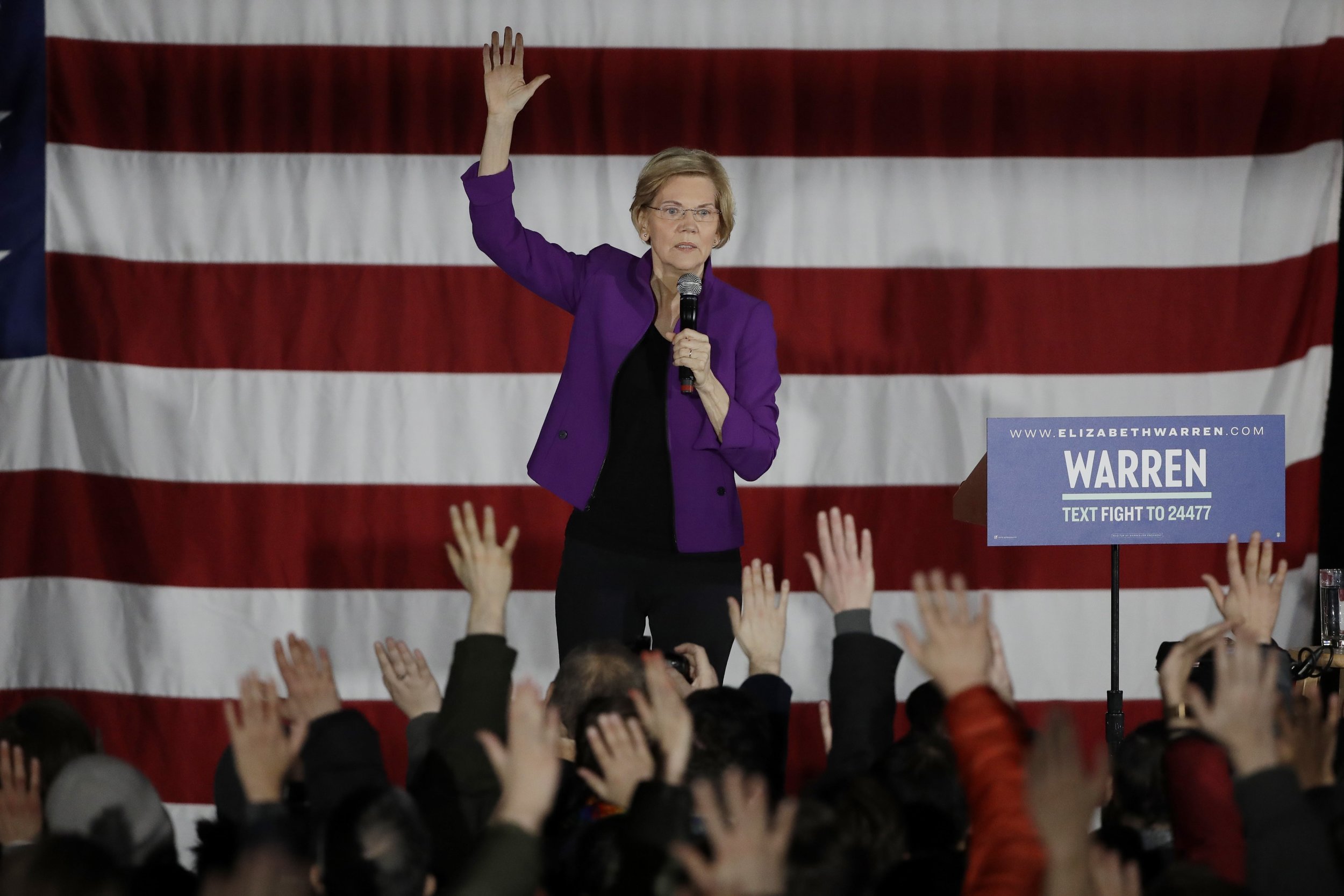 During remarks before a crowd of more than 1,000 people in Queens, Warren touted elements of her new tech-industry plan as part of her stump speech. She took aim at Amazon's search for lavish economic incentives from cities competing for its headquarters, likening the company's efforts to pit areas against each other to the dystopian film "The Hunger Games."