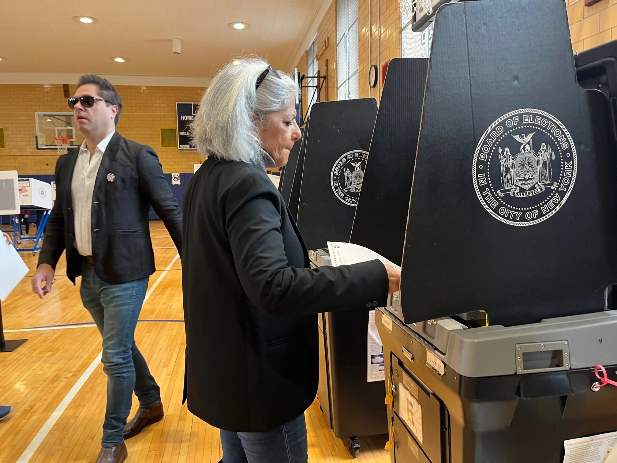 Republican Councilmember Vickie Paladino casts her vote at P.S 193. Eagle photo by Ryan Schwach