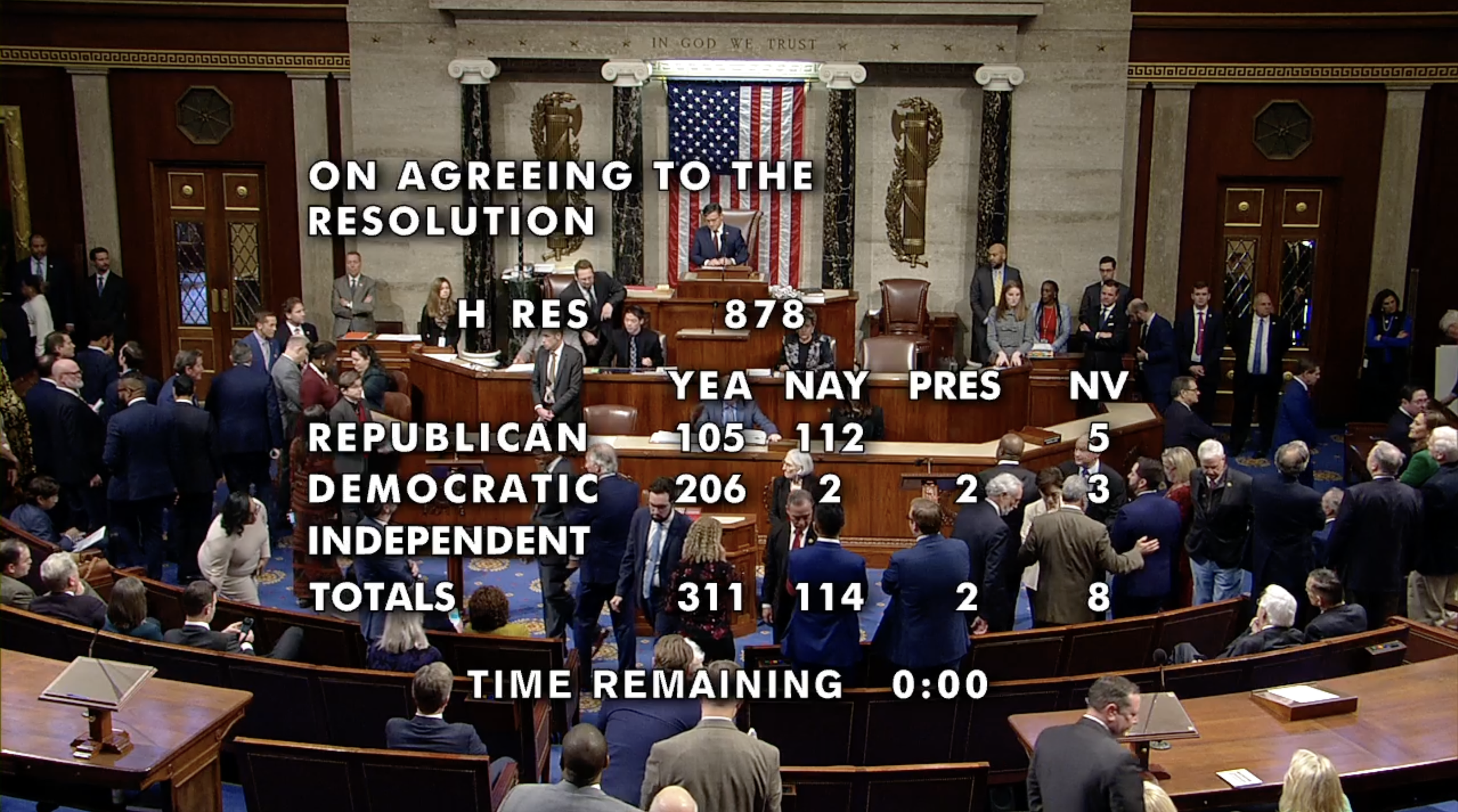 More than two-thirds of the House of Representatives, including 112 Republicans, voted to expel George Santos on Friday morning. Screenshot via the United States House of Representatives
