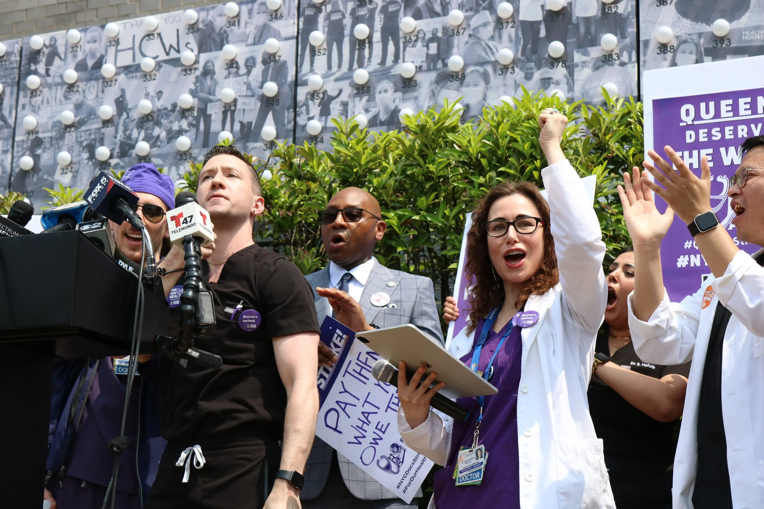The residents were joined on Monday by members of the nurses union, as well as other union members and elected officials, like Councilmembers Jennifer Guiterrez and Carmen De La Rosa and Queens Borough President Donovan Richards.