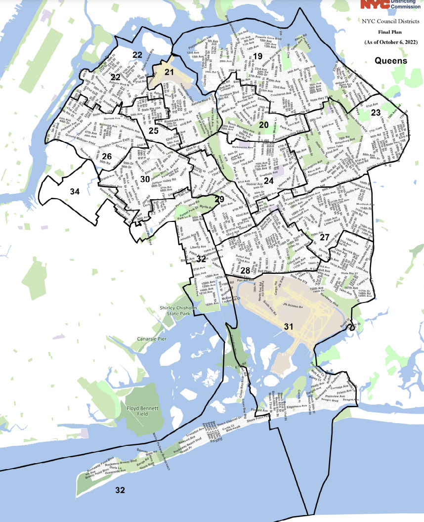 Queens has new City Council lines after the city’s districts were redrawn last year. Map via the New York City Districting Commission
