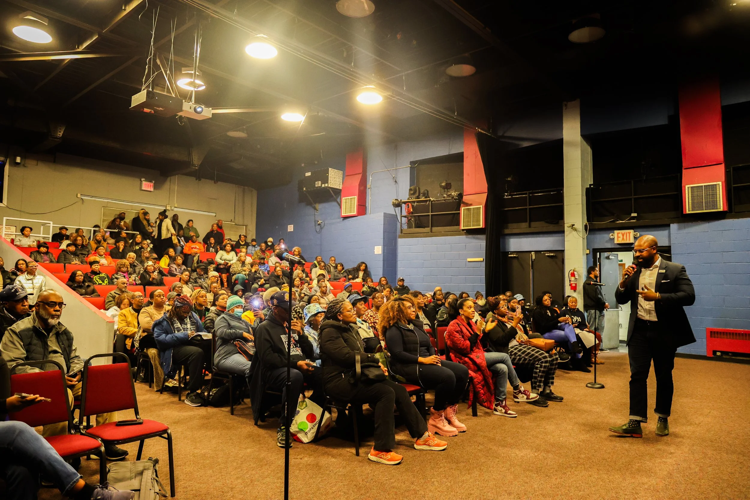 Local leaders held an “emergency town hall” last week to discuss concerns about Roy Wilkins park and the rec center with the St. Albans community. Eagle photo by Ryan Schwach