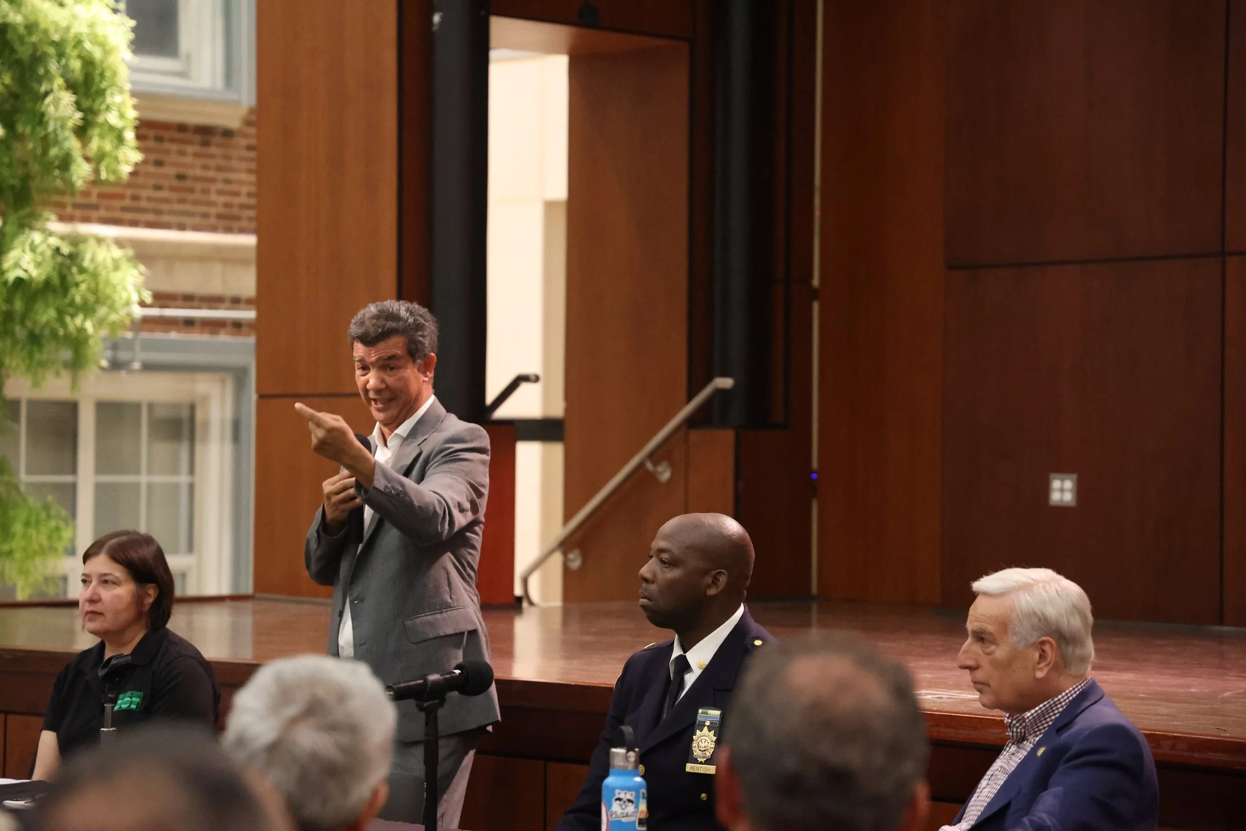 Department of Transportation officials, including DOT Commissioner Ydanis Rodriguez, addressed Queensboro Bridge construction delays and other issues at a town hall at Borough Hall in Kew Gardens on Wednesday. Eagle photo by Ryan Schwach