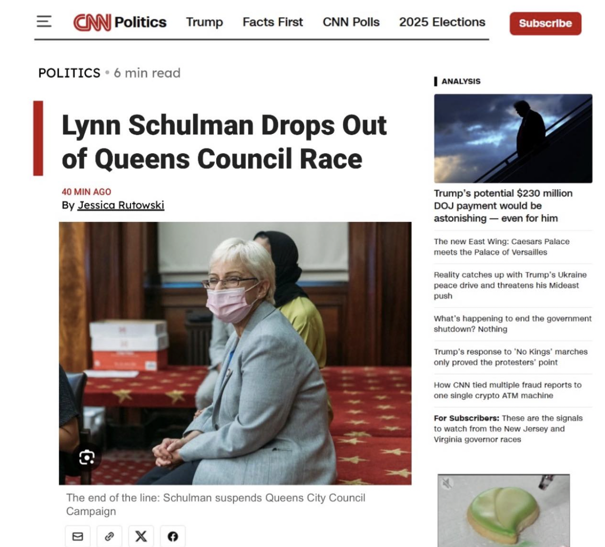 Rinaldi’s initial posts – which he continues to claim he did not make – include fake articles appearing in the Eagle, Queens Chronicle and New York Post about endorsements he did not actually get from lawmakers like Assemblymember Andrew Hevesi, former Governor Andrew Cuomo and City Councilmember Robert Holden. Some of the fraudulent stories also claimed Schulman had endorsed Zohran Mamdani for mayor, which she has not.