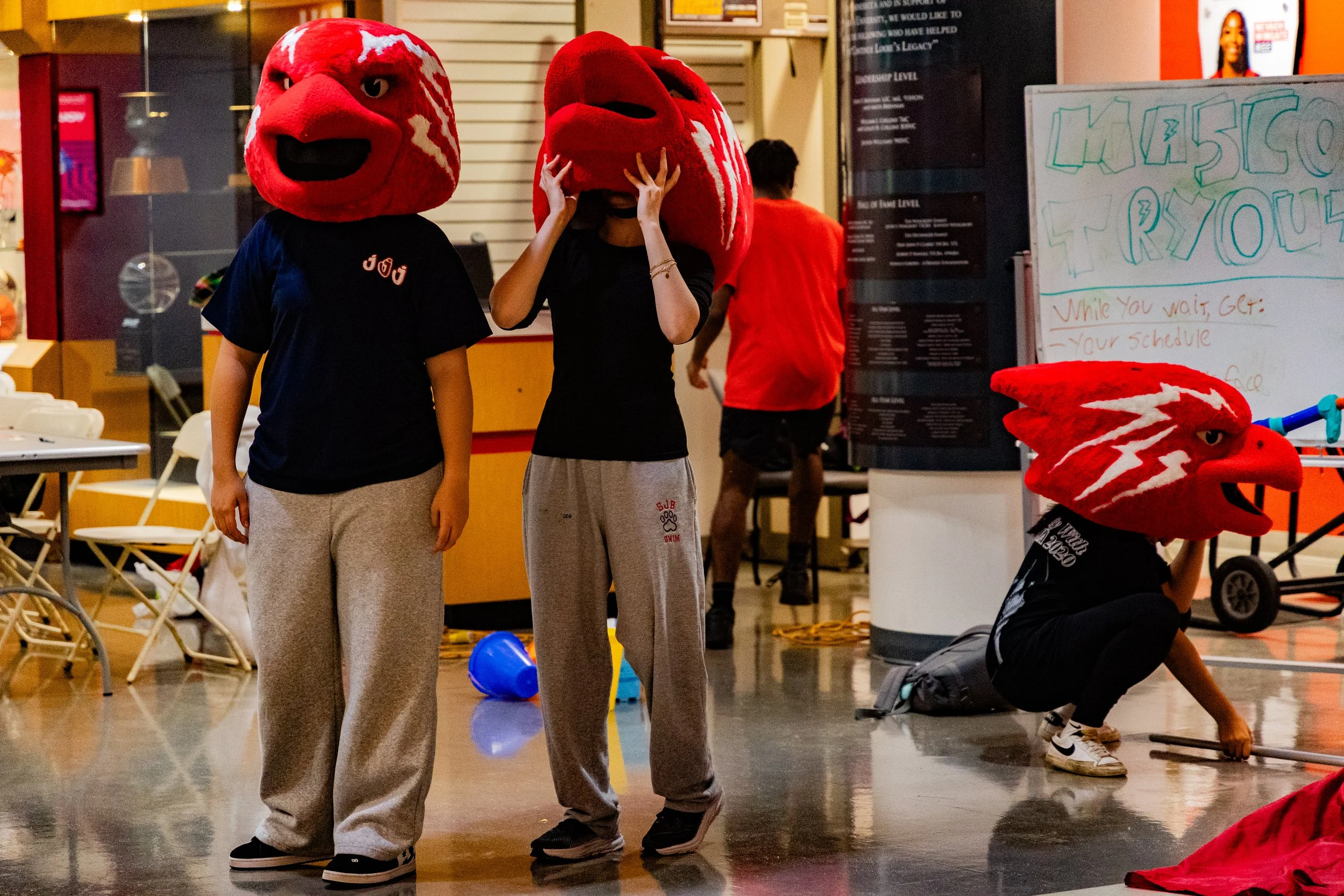 The stiff competition to find who would serve on the school’s small and secretive mascot team was about to begin.