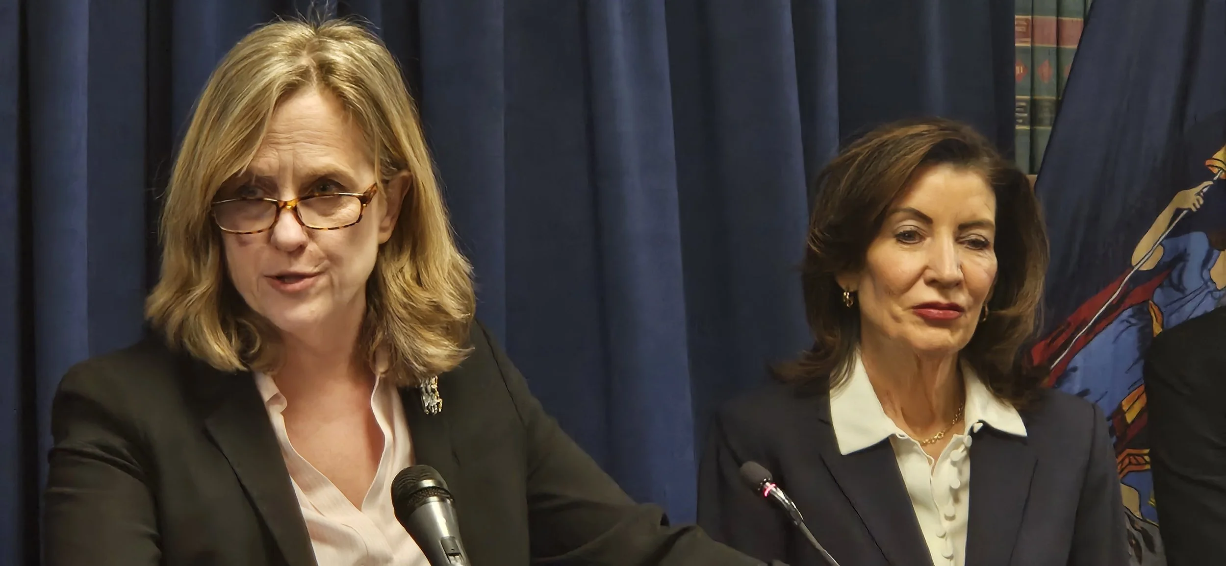 /Queens District Attorney Melinda Katz and Governor Hochul announced 13 defendants were charged in a multi-million-dollar retail theft ring that operated out of Queens. Eagle photo by Noah Powelson