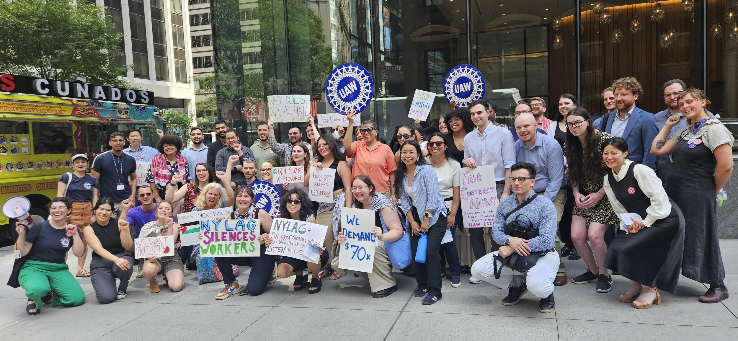 Just around the block, attorneys with the New York Legal Assistance Group were holding their own rally and said they had not yet received a contract offer meeting their chief demands. ALAA’s NYLAG chapter, who announced 88 percent of their union members voted to authorize a strike, were demanding increased cost of living adjustment, a $70k wage floor for all staff, more affordable health insurance, and other demands.