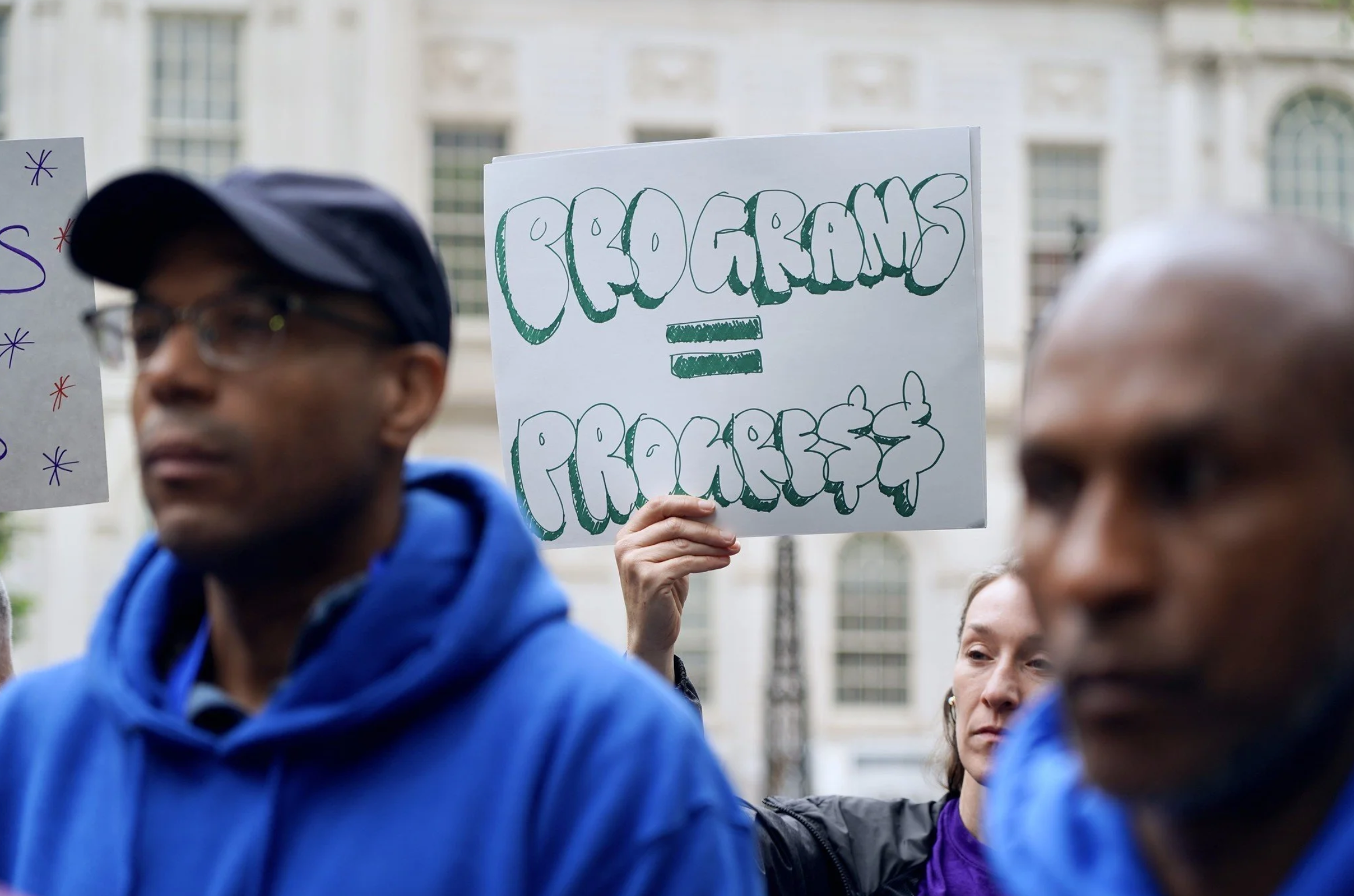 Advocates protested cuts made to nonprofit programming on Rikers Island in 2023. At the start of 2026, similar programs will return to the jails. File photo by Gerardo Romo/NYC Council Media Unit