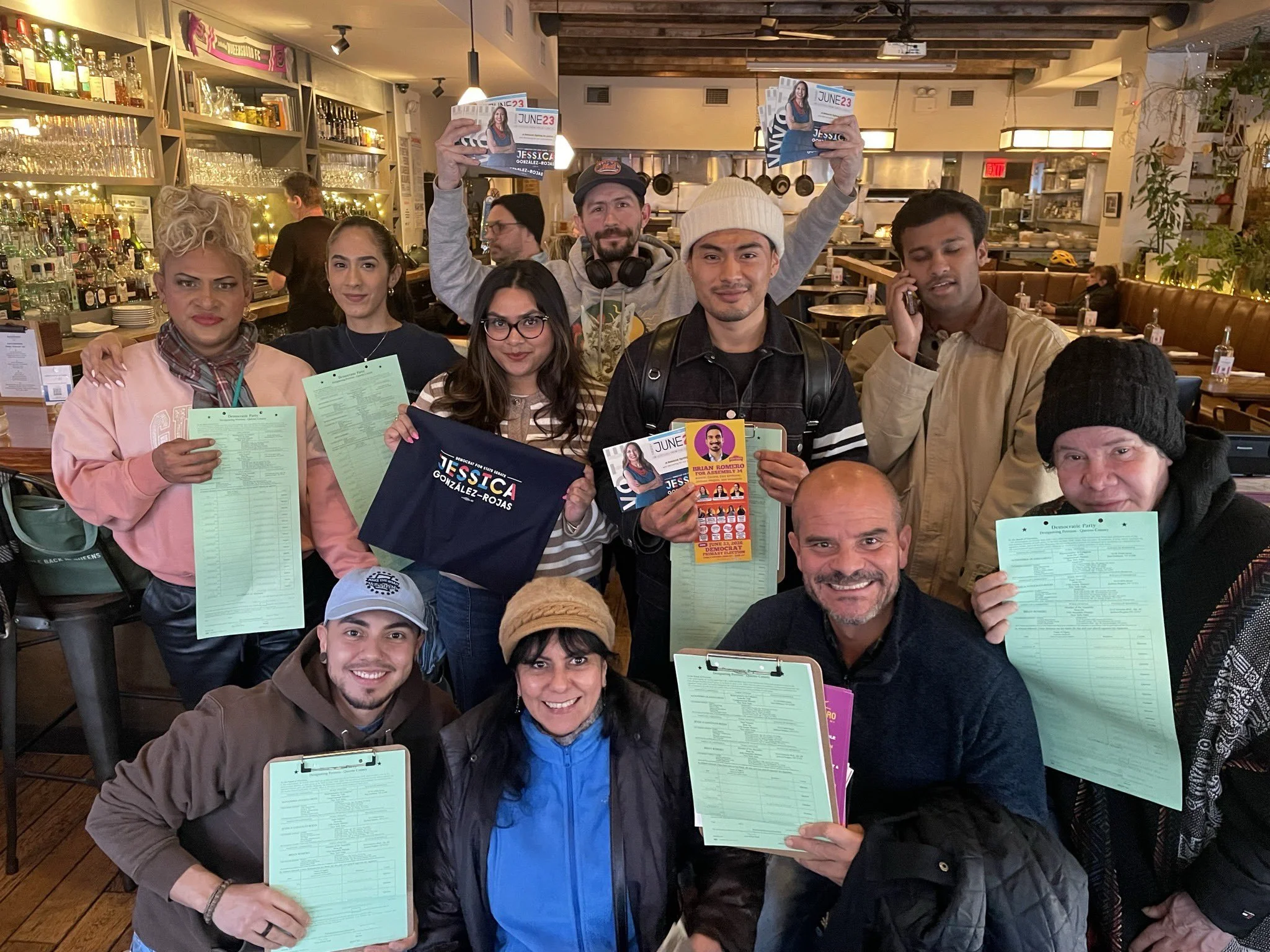 Volunteers are out gathering petitions for various Queens political candidates, including Brian Romero and Jessica Gonzalez-Rojas. Photo via Romero Campaign/X