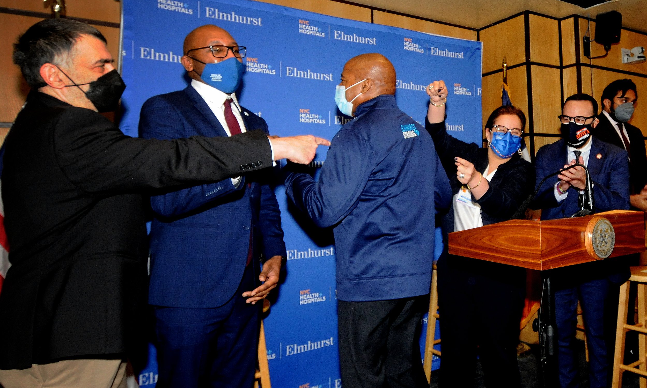 /Mayor Eric Adams stopped by Elmhurst Hospital Wednesday to announce new funding for Health and Hospitals facilities to support staffing needs. Eagle photo by Walter Karling