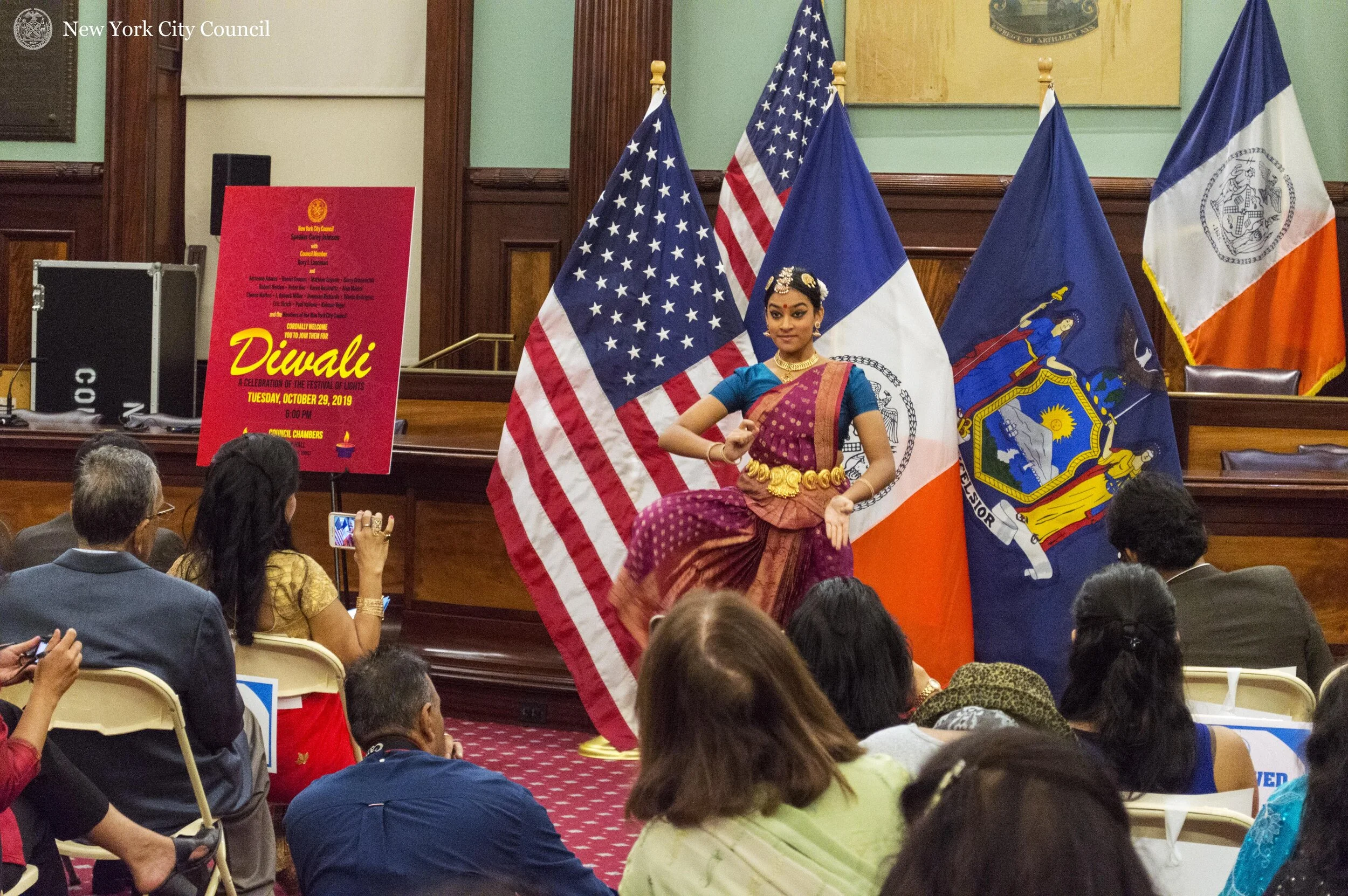 /A performer dances during a Diwali celebration at City Hall last week. Photo courtesy of the New York City Council.